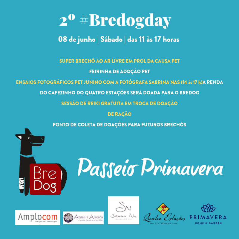 O BreDog – Brechó em prol da causa pet de Florianópolis – terá sua 2ª edição no dia 8 de junho, sábado, das 11 às 17 h, no espaço mais legal da cidade: o Passeio Primavera.