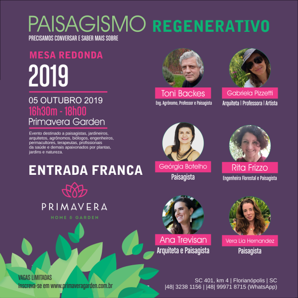 No próximo dia 5 de outubro, das 16h30 às 18 horas acontece uma mesa redonda sobre Paisagismo Regenerativo no Primavera Garden, com entrada franca. Coordenada…