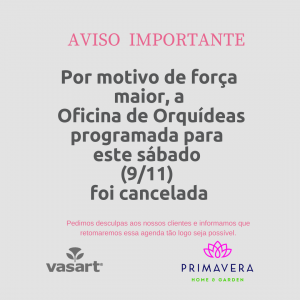Informamos que, por motivos de força maior, o evento com Carol Costa programado para o próximo sábado, 9 de novembro, foi cancelado.