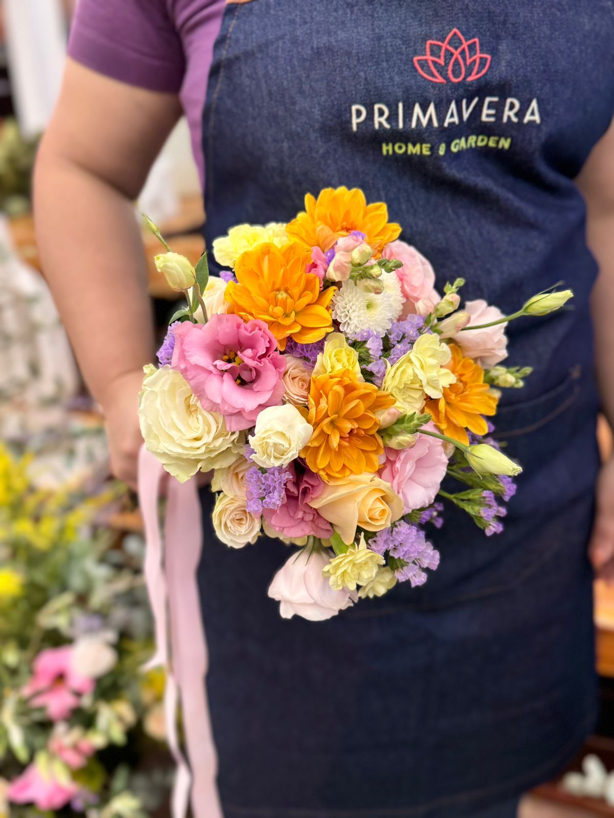 “Meu papel é assegurar que o buquê de cada noiva corresponda não apenas ao vestido, mas também à decoração e ao clima do evento. Muitas noivas desejam que suas flores sejam não só fotogênicas mas duradouras para permanecer lindas durante toda a cerimônia.”