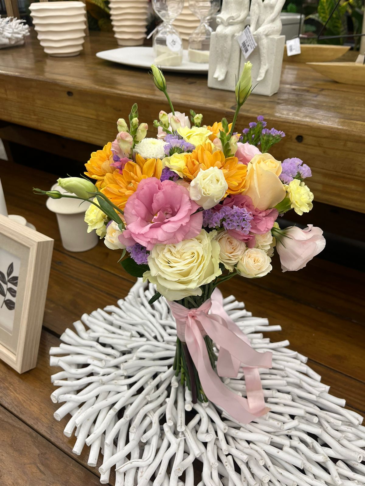 “Atendo uma grande diversidade de noivas, cada uma com estilo e personalidade únicos. Meu objetivo principal é conferir aos buquês um toque de sofisticação e elaborá-los meticulosamente para que expressem a essência e os desejos individuais de cada Cliente. Por exemplo: para noivas românticas, com estilo mais clássico, eu já sei que elas vão preferir tons pasteis e fazer escolhas mais tradicionais, como rosas e lisianthus, procurando, assim, um visual que nunca saia de moda, elegante e garantido para criar belas recordações.