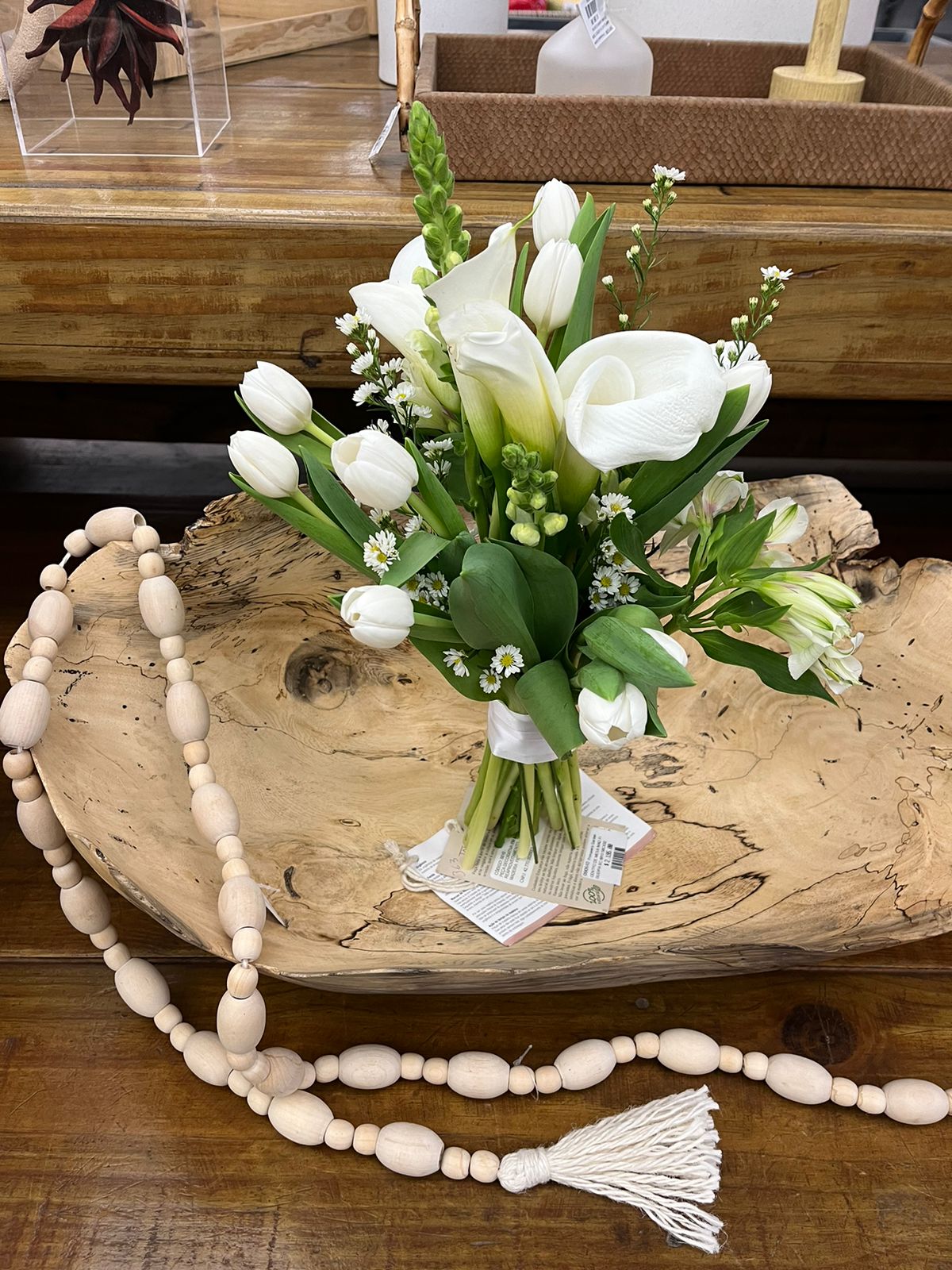 “Tradicionalmente, rosas (brancas ou tons pastel), Lisianthus, copo de leite e tulipas permanecem queridas por sua beleza e delicadeza, enquanto as Proteas emergem como as atualmente preferidas para um toque exótico e arranjos mais criativos e modernos.”