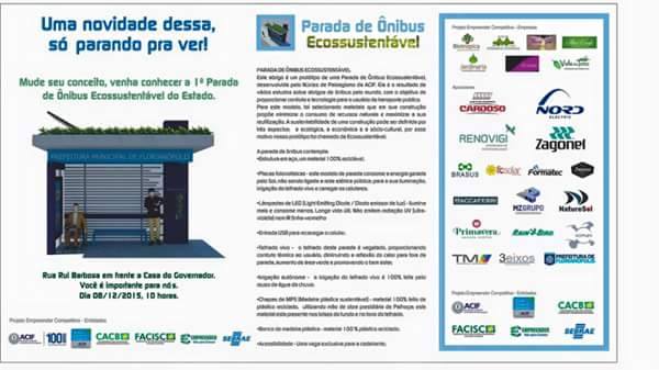 A ideia de fazer a parada ecossustentável foi baseada em outros projetos observados pelo Núcleo de Paisagismo na Alemanha e em Nova York. O grupo concorreu à edição 2013-2015 do Projeto Empreender Competitivo do Sebrae e foi contemplado com as viagens, que fazem parte do programa. Depois de entender como os espaços urbanos como praças e linhas férreas foram ocupados fora do país, o ponto de ônibus foi projetado para ser apresentado em uma das etapas propostas pela Acif ao Sebrae.